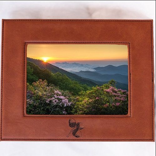 Brown leather picture frame featuring the Old Edwards Inn & 'Acorns' logo.